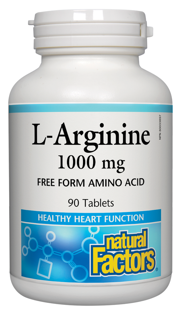Natural Factors L-Arginine 1000 mg is a non-essential amino acid involved in protein synthesis. It may help support a modest improvement in exercise capacity in individuals with stable cardiovascular disease (CVD). As a free-form amino acid, L-arginine is easier for the body to absorb and use than when consumed from food.