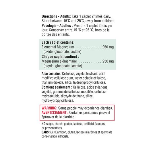 Elemental Magnesium (oxide, gluconate, lactate) 250 mg