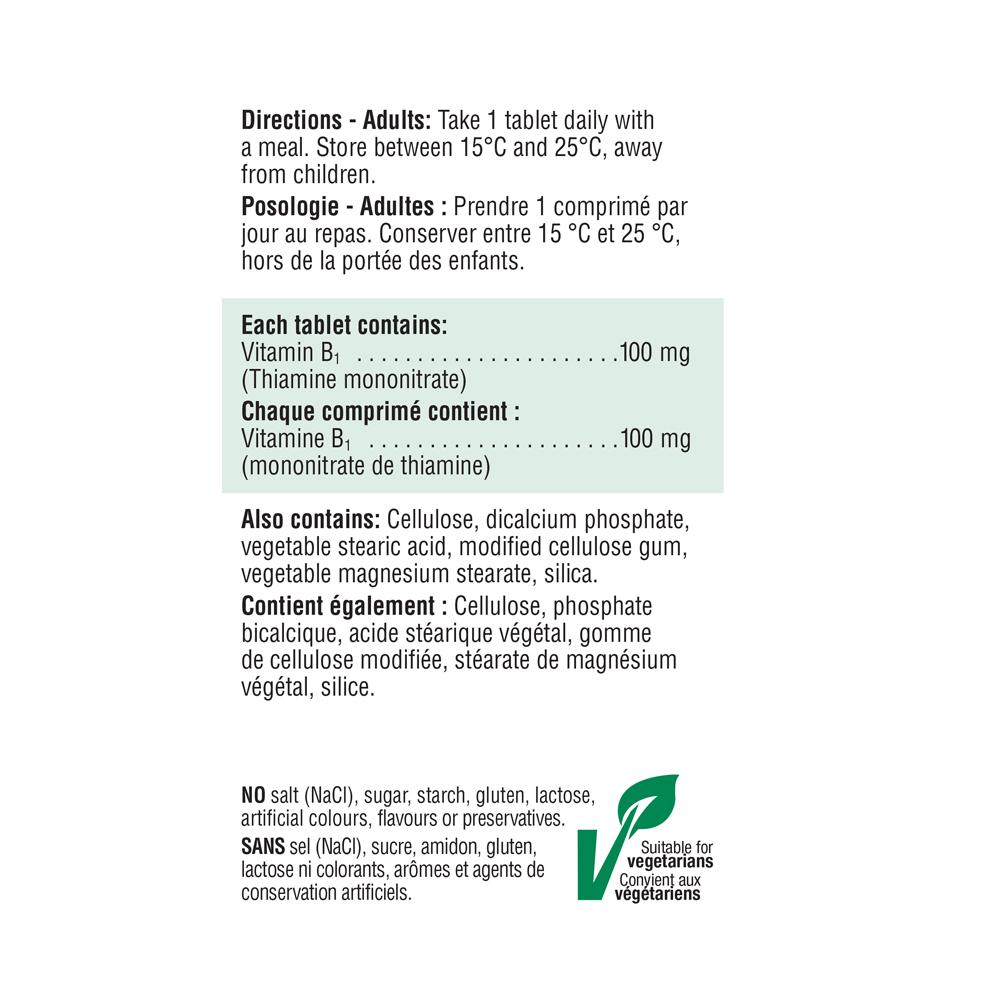 Jamieson Vitamin B1 (Thiamine) 100 mg helps to metabolize amino acids and carbohydrates and promotes a healthy nervous system. It is involved in the synthesis of red blood cells, while also aiding in tissue formation.