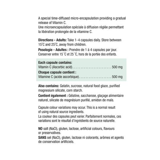 Jamieson Vitamin C 500 mg Timed Release provides a gradual release of premium vitamin C. A powerful antioxidant, it offers a variety of benefits from boosting the immune system to promoting healthy capillaries, teeth and gums, and aiding in iron absorption.