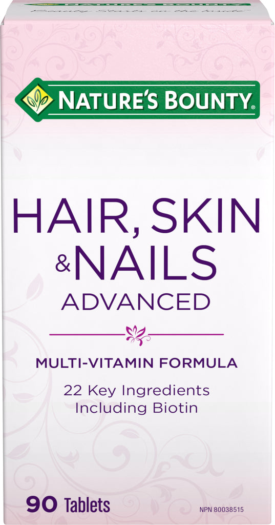 Being healthy is always beautiful! Nature's Bounty® Hair, Skin & Nails Advanced Multivitamin Formula will help you look good and feel great. This unique multivitamin formula has 22 ingredients (including biotin), to help maintain your hair, skin and nail structure.