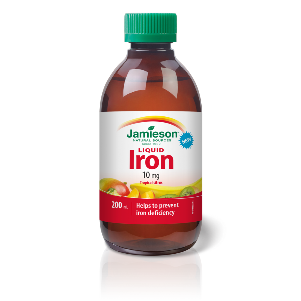Jamieson Iron Liquid helps to prevent iron-deficiency anemia and to form red blood cells in an easy-to-take, delicious tropical citrus liquid!