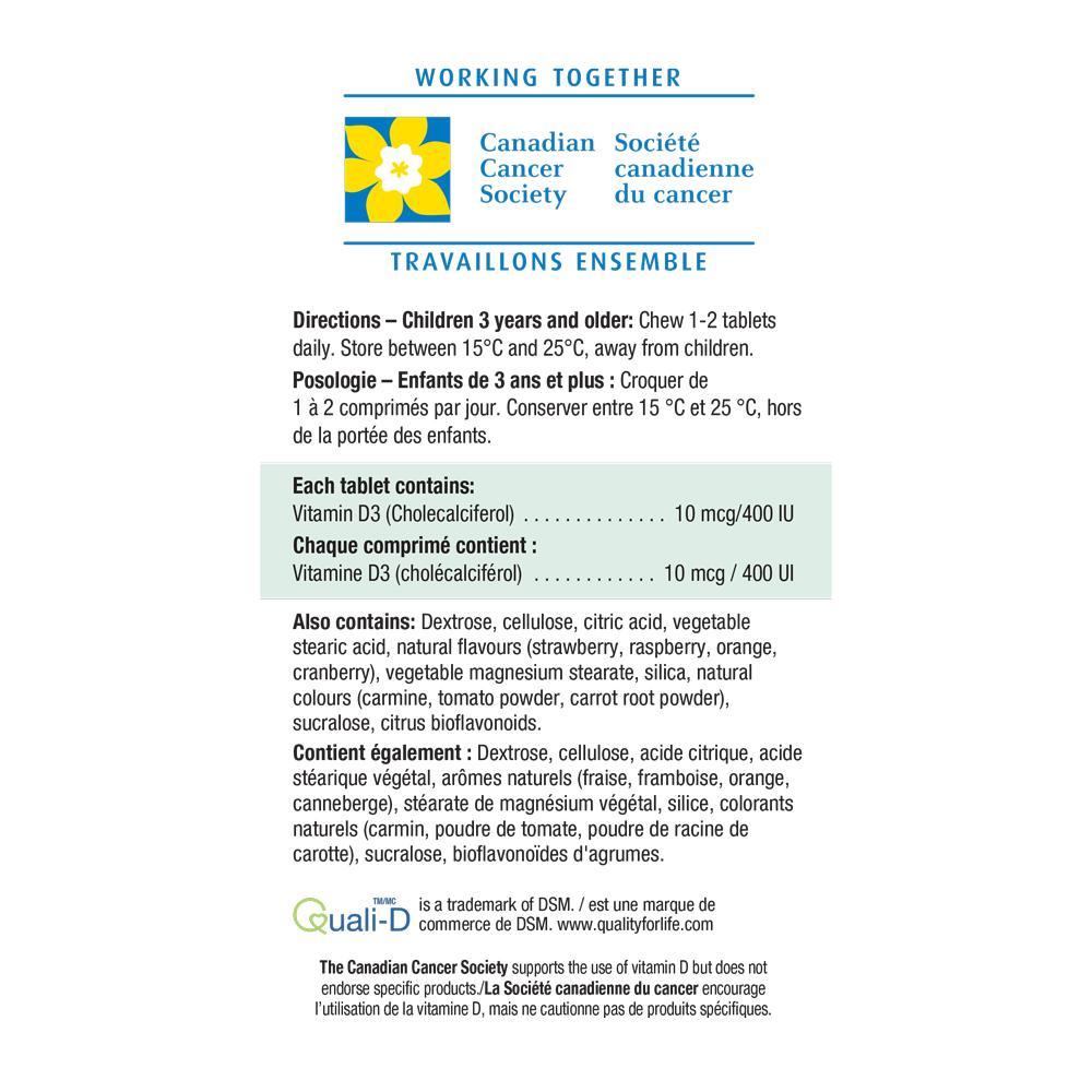 Jamieson Kids Chewable Vitamin D 400 IU is a delicious strawberry flavoured vitamin D supplement specifically formulated for the healthy development of bones and teeth in children.