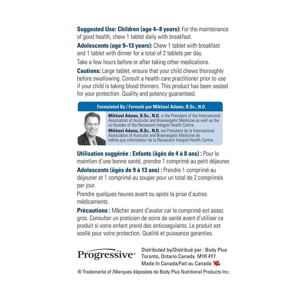 Large tablet: Make sure your child chews thoroughly before swallowing. Consult a health care practitioner prior to use if your child is on anticoagulants.