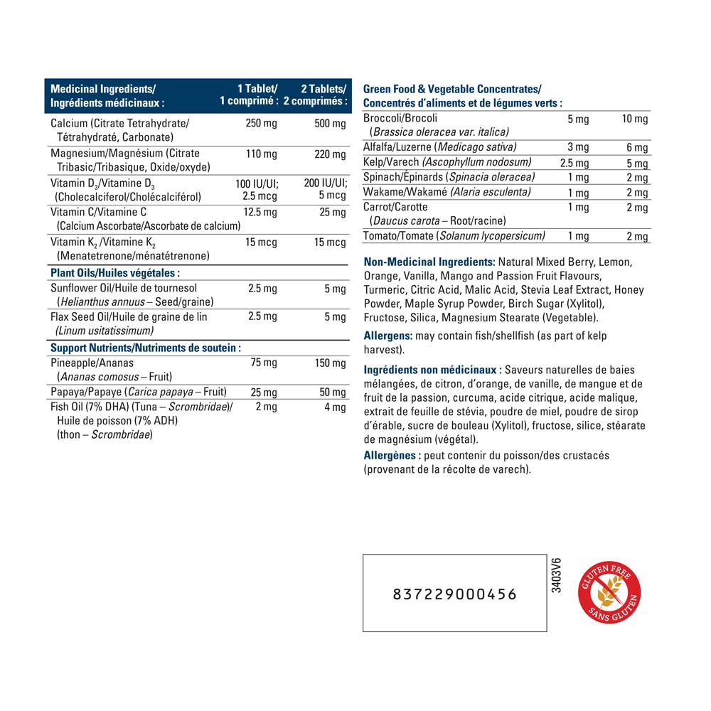 | Calcium (Citrate Tetrahydrate, Carbonate) | 250 mg |