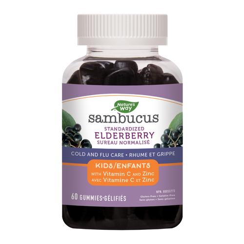 Nature's Way Sambucus Cold and Flu Care for kids is traditionally used in Herbal Medicine to help relieve symptoms of colds and flus. These delicious tasting elderberry gummies contain 50 mg of Black Elder, 90 mg of Vitamin C and 7.5 mg of Zinc for each serving of two gummies. The addition of Vitamin C and Zinc also provide immune support. Bonus? It's a taste your kids will love and the gummies are gluten-free and gelatin-free.
