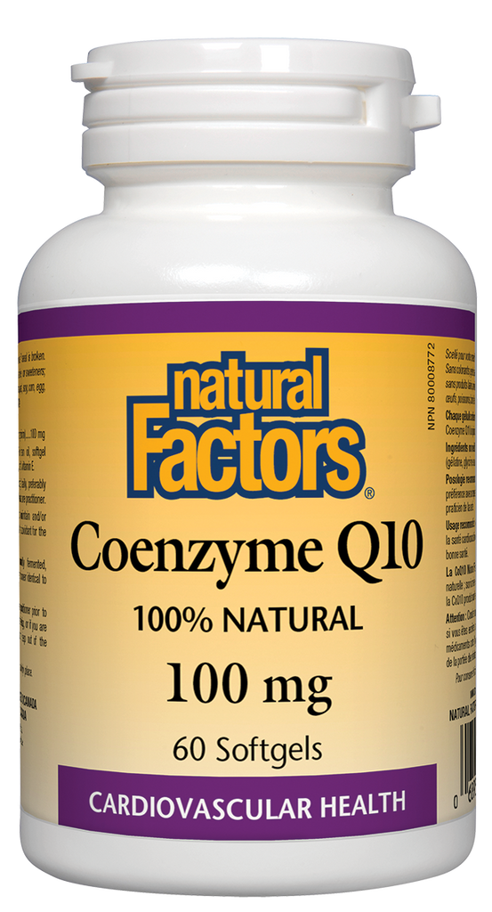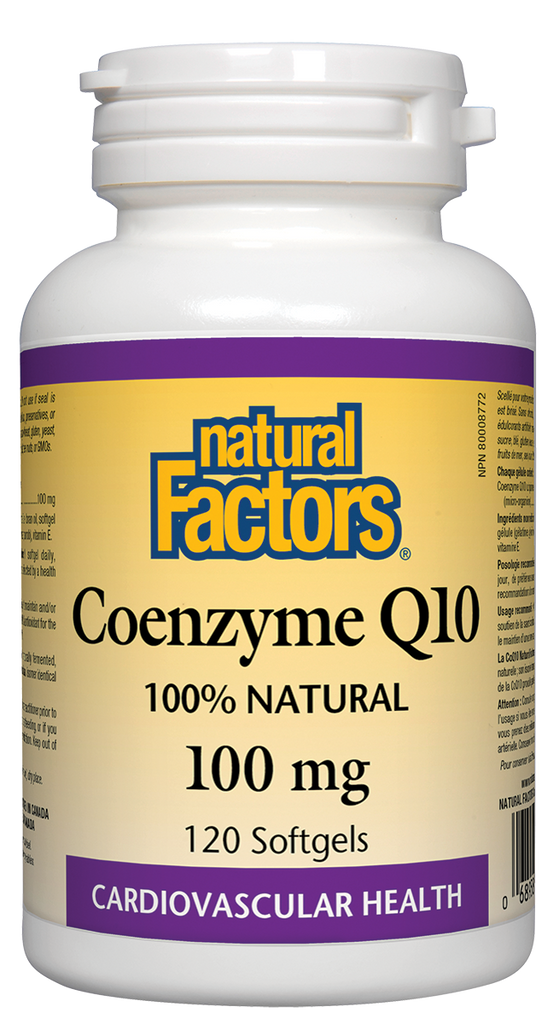 Coenzyme Q10 is a vitamin-like essential nutrient that helps increase levels of cellular energy production and is required by every cell in our body. Known to support cardiovascular health and cellular vigour. Natural Factors Coenzyme Q10 100 mg is 100% natural, consisting of the form identical to the body's own CoQ10.