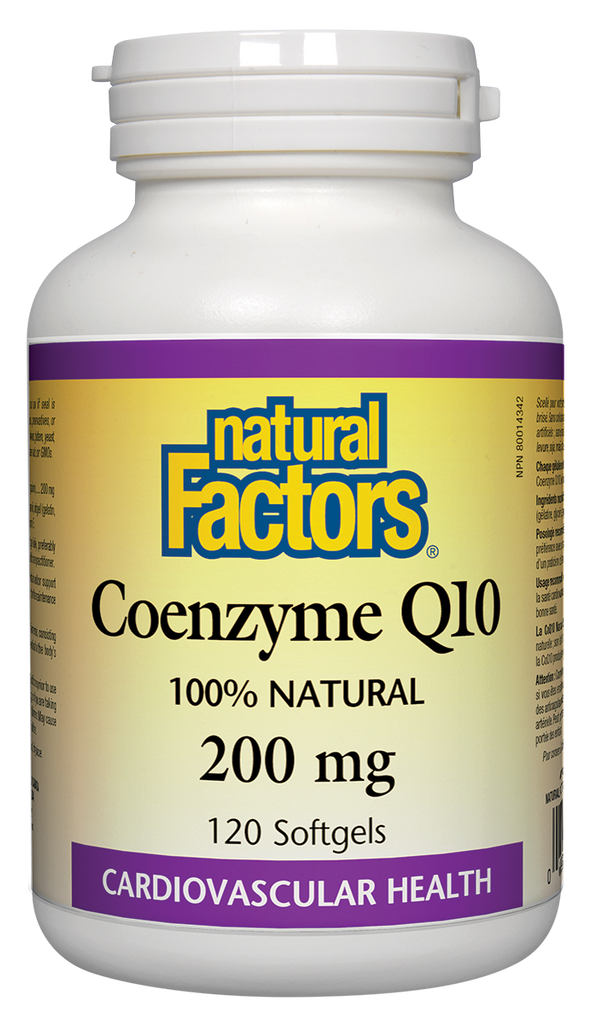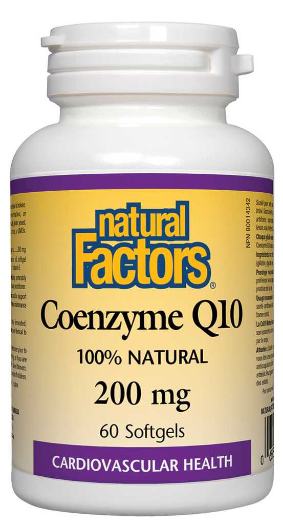 Coenzyme Q10 is a vitamin-like essential nutrient that helps increase levels of cellular energy production and is required by every cell in our body. Known to support cardiovascular health and cellular vigour. Natural Factors Coenzyme Q10 200 mg is 100% natural, consisting of the form identical to the body's own CoQ10.