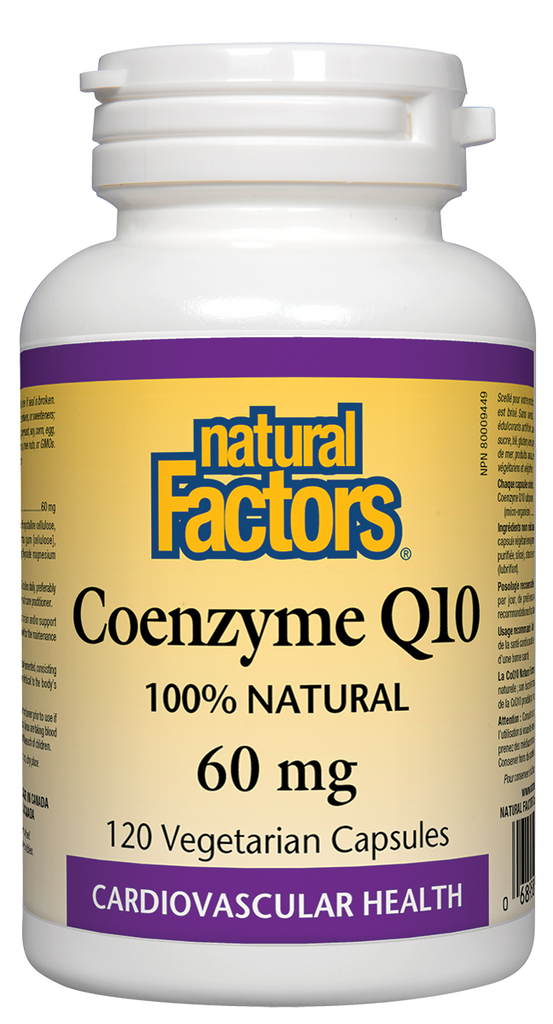 Coenzyme Q10 is a vitamin-like essential nutrient that helps increase levels of cellular energy production and is required by every cell in our body. Known to promote healthy heart function, Natural Factors Coenzyme Q10 is naturally fermented, consisting of the form identical to the body's own CoQ10.
