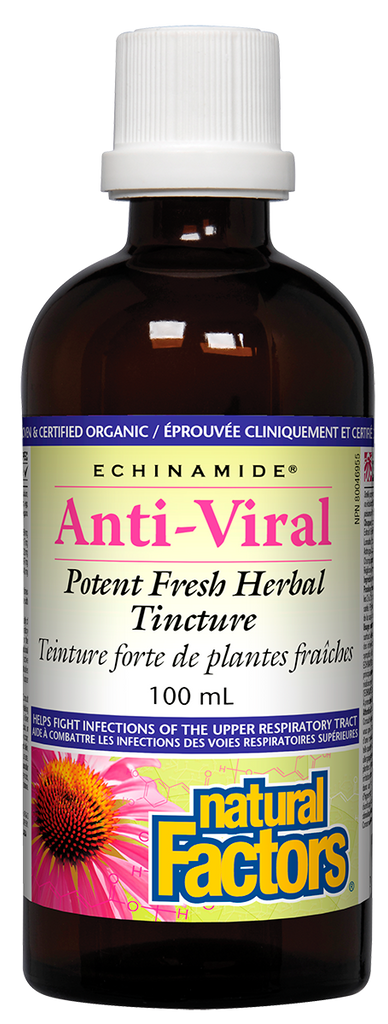 Natural Factors ECHINAMIDE Anti-Viral Potent Fresh Herbal Tincture harnesses the power of nature to help you fight viruses. A proprietary blend of clinically proven ECHINAMIDE with well-researched anti-viral herbs, this formula relieves symptoms and helps the immune system deliver a more potent viral-fighting punch.