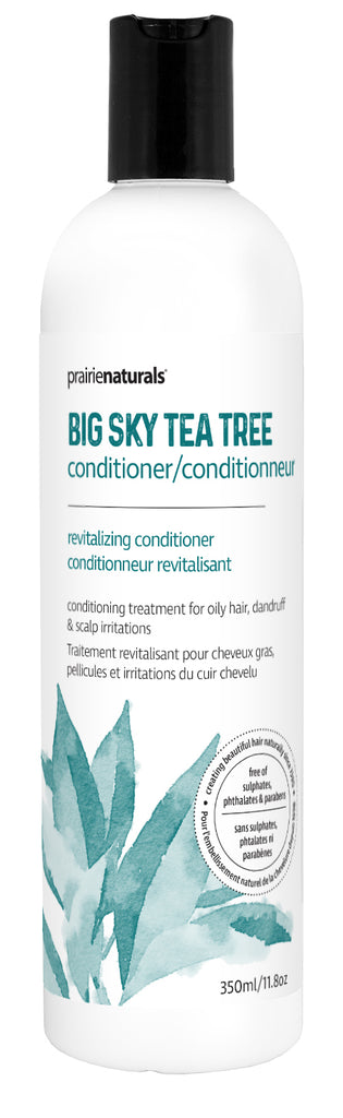Directions: Apply generously to clean, wet hair. Gently massage conditioner into the hair and scalp. Leave on as desired and rinse well with warm water. For best results, use regularly with Big Sky Tea Tree Revitalizing Shampoo and Prairie Naturals Styling Products.