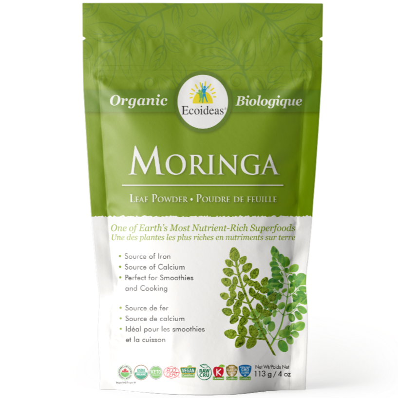 It is high in vitamin A and iron, and is a source of vitamin B6, calcium and vitamin C. Ecoideas Moringa is grown organically, and is kept raw by gentle drying in order to preserve its vitamin and mineral content.