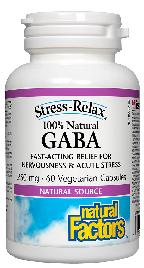 Stress-Relax 100% Natural GABA is a naturally sourced form of the important brain compound gamma-aminobutyric acid (GABA). This higher potency formula delivers 250 mg of Pharma GABA¨ per vegetarian capsule to quickly promote relaxation, reduce nervousness and stress, and restore mental calmness without causing drowsiness.