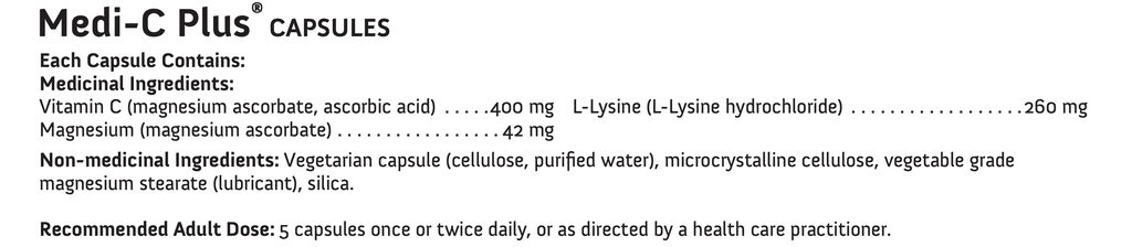 Humans do not make Vitamin C like animals do; we need to supplement this essential vitamin to meet our daily needs. Inadequate amounts of Vitamin C means poor collagen. Vitamin C and Lysine work together to build collagen, which strengthens and holds together the coronary cells. Coronary arteries, closest to the heart, receive the greatest pressure. Without enough Vitamin C the collagen weakens. This sets the stage for heart attack or stroke. Healthy collagen also supports healthy teeth, gums, cartilage, bones, connective tissue and wound healing. The antioxidants in Medi-C Plus also support and help maintain good health.