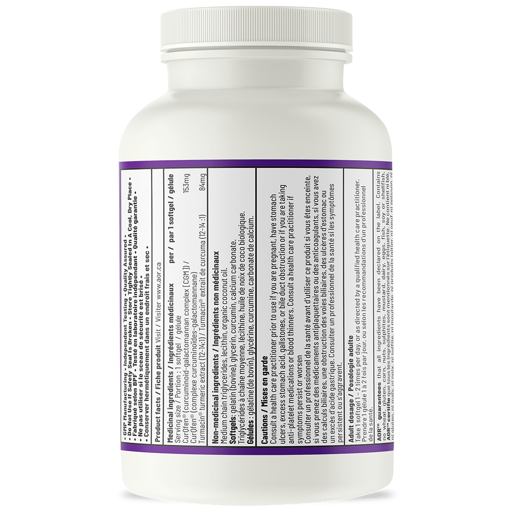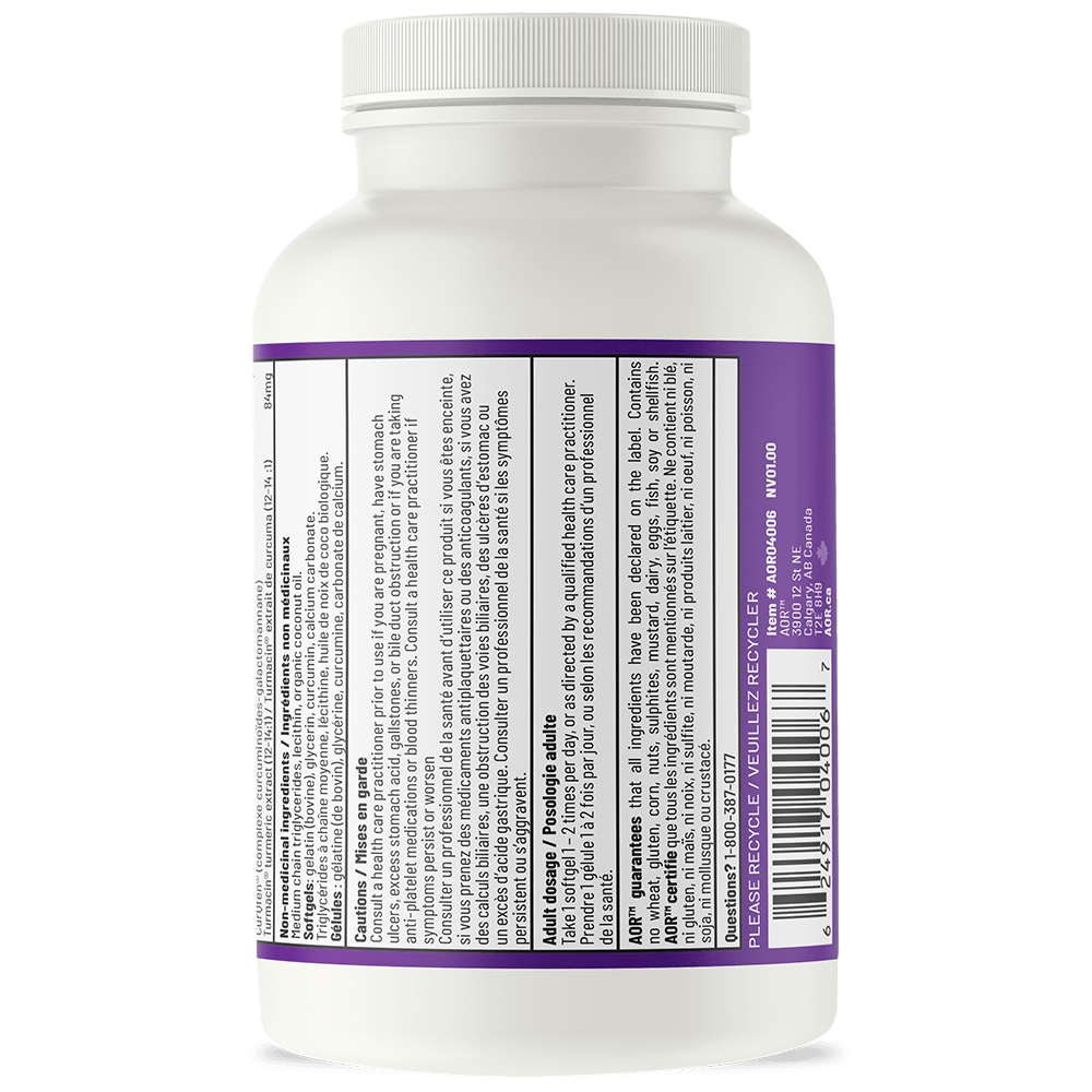 AOR’s Curcumin Ultra is the first product in Canada to combine CurQfen® with Turmacin®. This combination offers unprecedented absorption and bioavailability, providing the highest levels of bioactive free-form curcumin on the market. It combines multiple compounds from the turmeric root for more well-rounded support. It is more stable than other available curcumin products, and has been shown to circulate in the blood for over 24 hours.