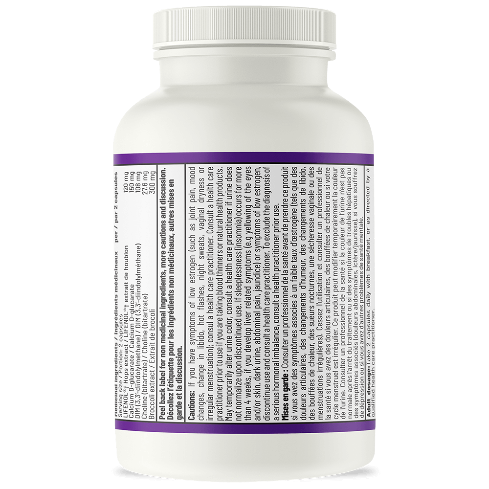 Estro Adapt™ reduces the risk of abnormal cellular growth related to estrogen via various mechanisms. It supports the production of “good” estrogens over “bad” estrogens thanks to DIM, a metabolite of I-3-C. DIM also supports healthy cervical tissue growth. 8PN is a phytoestrogen found in hops shown to reduce abnormal cell growth in breast tissue and interfere with undesirable estrogenic activity. D-glucarate, choline and SGS all support the detoxification of excess or inactivated hormones. Estro Adapt™ may also support healthy, regular menstruation due to its estrogen-modulating activities.
