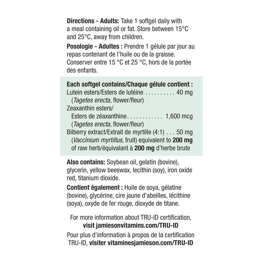 Jamieson Lutein 40 mg Ultra Strength is formulated with Zeaxanthin and Lutein to provide antioxidants for the maintenance of optimal eye health. Lutein 40mg consists of 1,600 mcg of Zeaxanthin that helps to support eye health in conditions associated with sunlight damage such as cataracts and age-related macular degeneration (AMD).