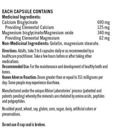 Calcium is vital to the development and maintenance of bones, teeth and gums, as well as for energy production, muscle contraction and nerve function. Magnesium is crucial to the uptake of calcium and potassium in the body, and is responsible for relaxing muscles, blood clotting, immune system support and the formation of ATP (energy storing molecule in the body).