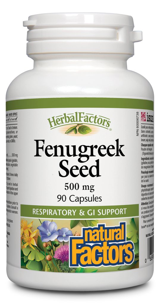 Fenugreek is traditionally used in Herbal Medicine as a digestive tonic to support digestion and as an expectorant to help relieve excess mucous in the upper respiratory passages. Natural Factors Fenugreek Seed is a GMO-free supplement that effectively combats the uncomfortable symptoms of infection.