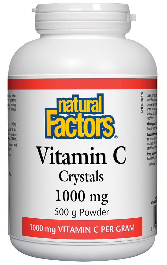 Vitamin C is best known for its antioxidant activity. It is also important for the normal development and maintenance of bones, cartilage, teeth, and gums. Natural Factors Vitamin C Crystals contain 1000 mg of vitamin C per 1/4 teaspoon and is easily dissolved in liquid for optimal absorption.