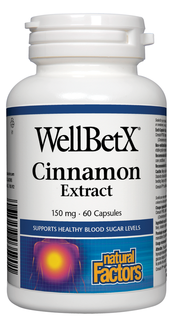 WellBetX Cinnamon Extract is made with CinnamonRich, a patented water extract of cinnamon containing bioactive compounds with insulin-like effects that can increase glucose uptake by 20-fold. WellBetX Cinnamon Extract supports healthy blood sugar and cholesterol levels within a normal range.