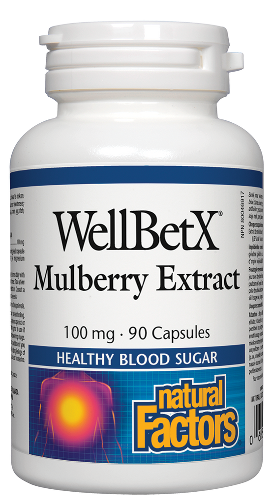 WellBetX Mulberry Extract from Natural Factors is a unique herbal extract designed to help balance and promote healthy blood sugar levels. One convenient capsule provides 100 mg of high potency white mulberry extract, standardized to contain the correct potency of key plant actives.