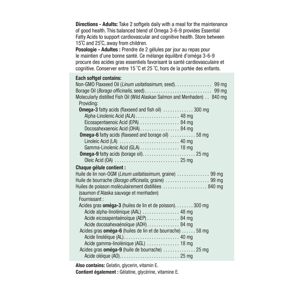 Jamieson Omega 3-6-9 is a complete source of omega-3, 6 and 9 essential fatty acids. Derived from fresh, pure cold-pressed oils of organic flax, borage and sustainably sourced fish, it helps to support heart health and maintain healthy cognitive function.