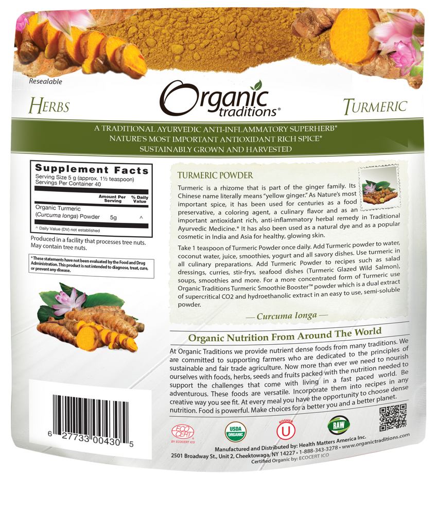 Turmeric is a rhizome that is part of the ginger family. Its Chinese name literally means yellow ginger. As one of natures most revered botanticals, it has been used for centuries as a food preservative, a coloring agent, a culinary flavor and as an important anti-inflammatory herbal remedy in Ayurvedic Medicine. It has also been used as a natural dye and as a popular cosmetic in India and Asia for healthy, glowing skin. This tri-doshic balancing herb supports many systems of the body. According to the energetic principles of Ayurveda, Turmeric is pungent, bitter and astringent in the Rasa taste energy, heating in action according to Virya and balancing for Vata, Pitta and Kapha constitutional doshas, with a tendency to increase Vata and Pitta. It is considered a wonderful daily herb to support general well-being, vitality and health.
