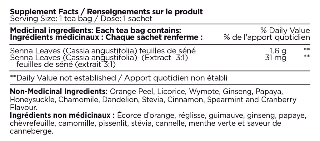 Based on an ingredient used in Traditional Chinese Medicine, this unique tea blend relies on the stimulating effects of Senna leaf. Senna belongs to a large genus of flowering plants found throughout the tropics.