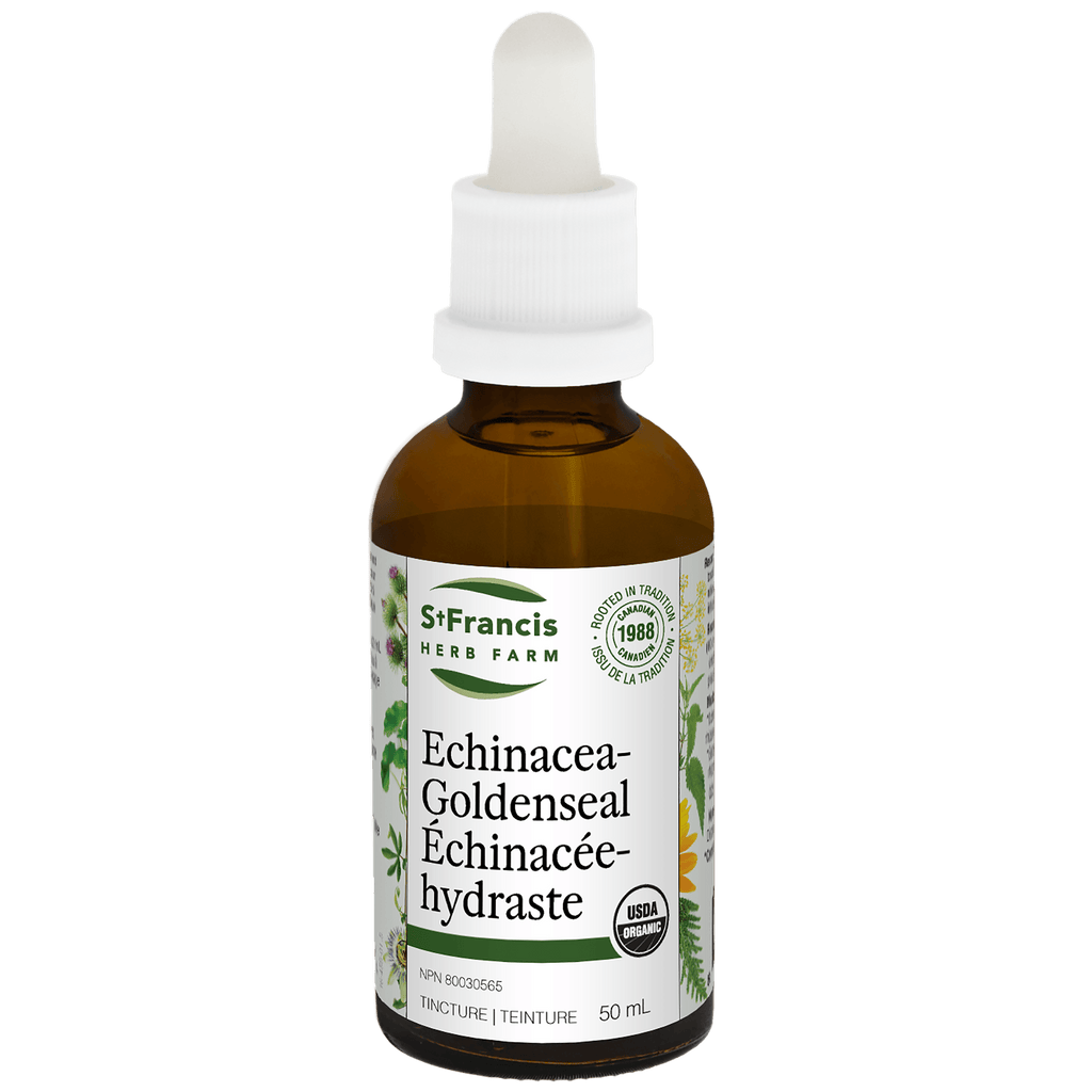 Certified Organic Echinacea (Echinacea angustifolia, root and rhizome), Certified Organic Goldenseal (Hydrastis Canadensis, root and rhizome)