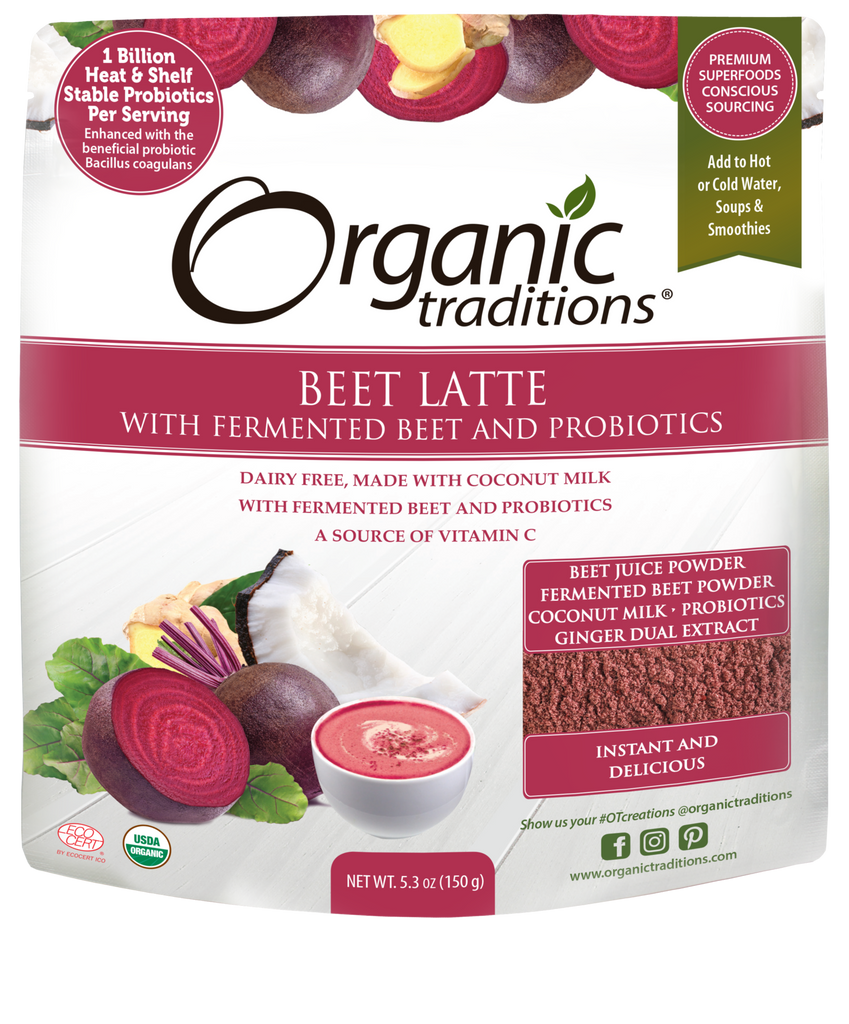 A blend of fermented beet root powder and beet juice powder with a coconut milk powder base, lightly sweetened with organic coconut palm sugar. Enjoy a creamy and delicious beet latte instantly by blending 6oz of hot water with 1 tbsp of powder. We've also included 1 billion heat and shelf stable probiotics per serving - helping to nourish your gut microbiome with every sip!