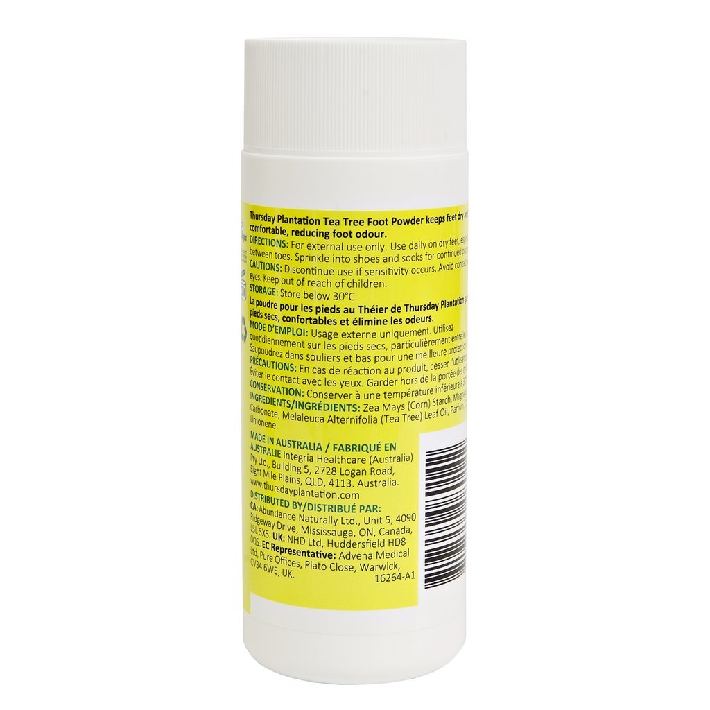 Corn Starch, Magnesium Carbonate, Melaleuca Alternifolia (Tea Tree) Leaf Oil, Fragrance, Citral, Limonene.