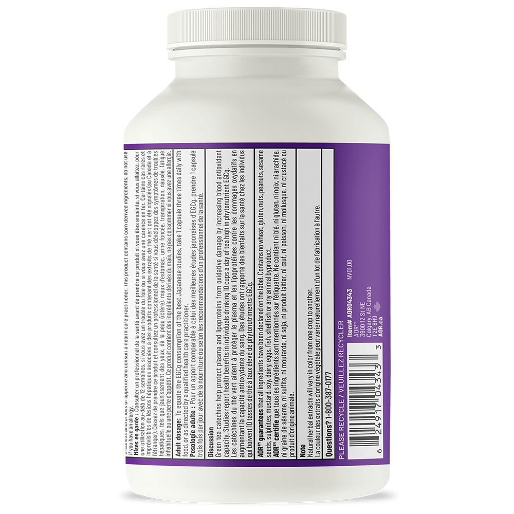 Green tea provides powerful antioxidants, promotes longevity, cardiovascular health, healthy weight management, healthy cellular growth & differentiation, liver health, and more. AOR™ Active Green Tea is a high-potency standardized extract of green tea, high in epigallocatechin gallate (EgCG), believed to be the key phytonutrient responsible for green tea’s health benefits. Studies most consistently report health benefits in persons drinking 10 cups a day of high-EgCG sencha-style Japanese green tea; each cup of this tea contains 150 milligrams of EgCG. The labels of most green tea extracts exaggerate the number of cups of tea represented in their capsules by comparing the product to poor-quality teas. AOR™ Active Green Tea allows you to more fully enjoy the healthy properties of a sencha-rich lifestyle without consuming large volumes of tea. Active Green Tea also contains a tiny amount of caffeine to optimize its benefits while minimizing any negative effects from caffeine.