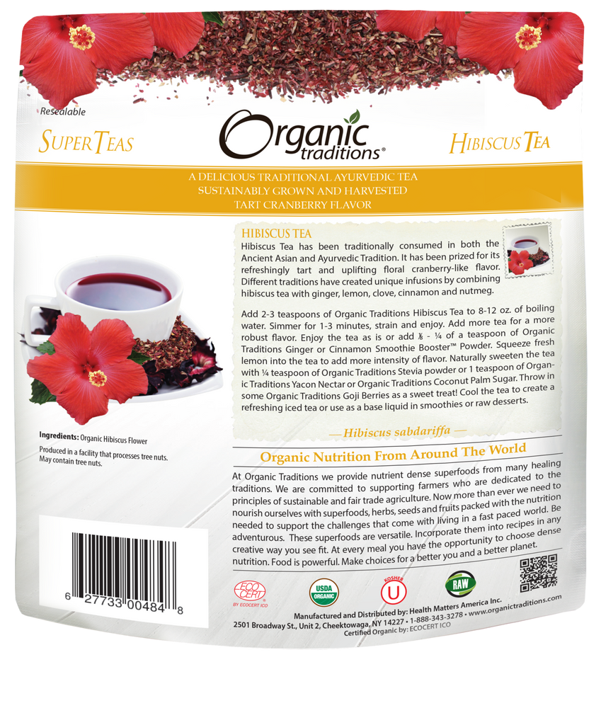 Hibiscus Tea has been traditionally consumed by many cultures around the world as both a hot and cold beverage. It has been prized for its refreshingly tart and floral cranberry-like flavor. Different traditions use Hibiscus as a base to make unique infusions by combining hibiscus tea with ginger, lemon, clove, cinnamon and nutmeg. Hibiscus has been traditionally used in Ayurvedic Medicine as a beneficial tonic. It is a wonderful tea to incorporate into the daily diet.