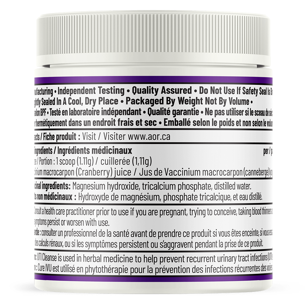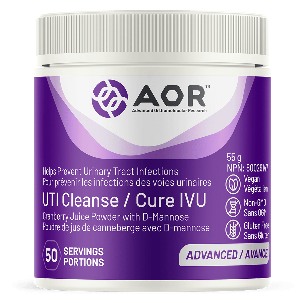 AOR’s UTI Cleanse, a natural antiseptic, provides a small amount of cranberry with a large dose of D-mannose in both tablet and powder form for your convenience.