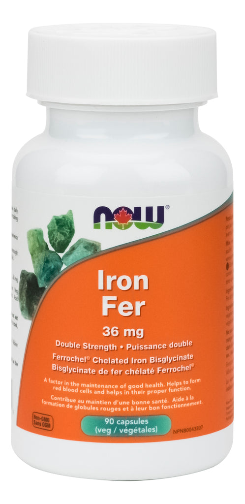 This double-strength iron product is well suited to restore and maintain healthy blood iron levels. Iron is an essential component of hemoglobin, a molecule that transports oxygen to the cells of the body, and myoglobin, which binds oxygen used in muscle tissues. NOW uses Ferrochel® Iron Bisglycinate, which has clinically demonstrated superior absorption and is well tolerated because it is gentle and non-constipating.