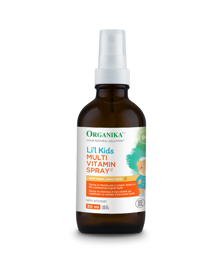 Kids Multi Vitamin Spray provides your child with the vitamins and minerals they need for healthy growth and development, all in a convenient, fuss -free spray format. Formulated with quality vitamins, Organika's Kids Multi Vitamin Spray, in fruity orange flavour, targets bone growth, immune function, hormonal balance, eye health and more!