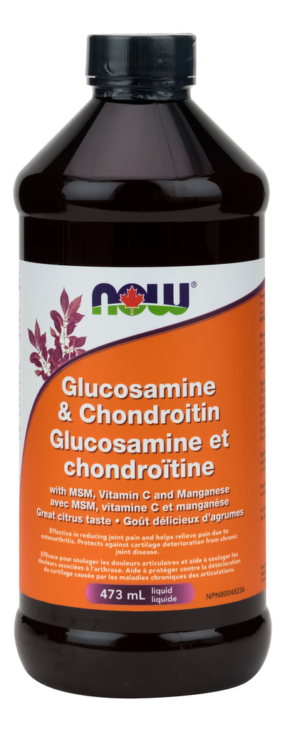 NOW® Liquid Glucosamine & Chondroitin with MSM combines three of the best known nutrients available for the support of healthy joints in a convenient liquid form. Scientific studies have demonstrated that Glucosamine and Chondroitin can promote normal joint mobility and comfort. MSM is present as a naturally occurring sulfur compound and Manganese and Vitamin C have been included as complementary ingredients to provide optimal nutritional support for the production of healthy joint structures.