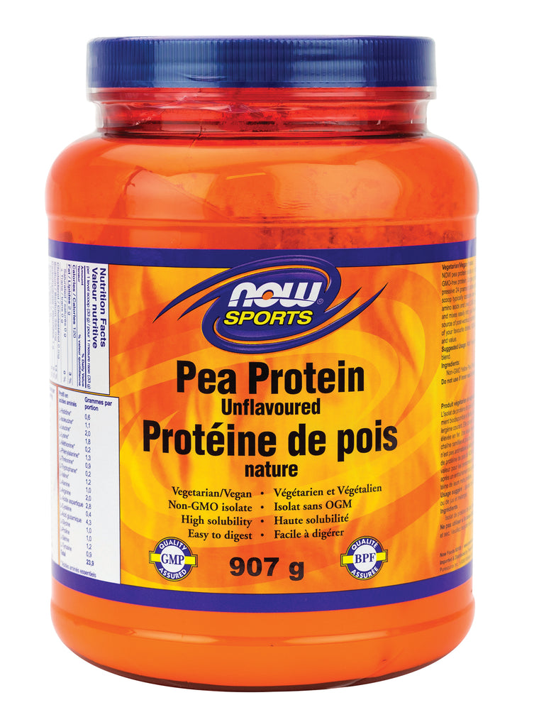 Peas are well known for being a highly bioavailable protein. Additionally, they have no major allergens. Collectively, this makes pea protein an ideal source of post-workout nutrition for athletes who may have difficulty supplementing with other types of protein. NOW® Sports Pea Protein is a Non-GMO vegetable protein isolate that has 24 grams of easily-digested protein and is an excellent source of iron. Each 1 scoop (33 g) serving typically has over 4,200 mg of branched chain amino acids, and over 2,000 mg of L-Arginine. NOW® Sports Pea Protein is pure and natural, unflavoured, and mixes easily into your favourite beverages.