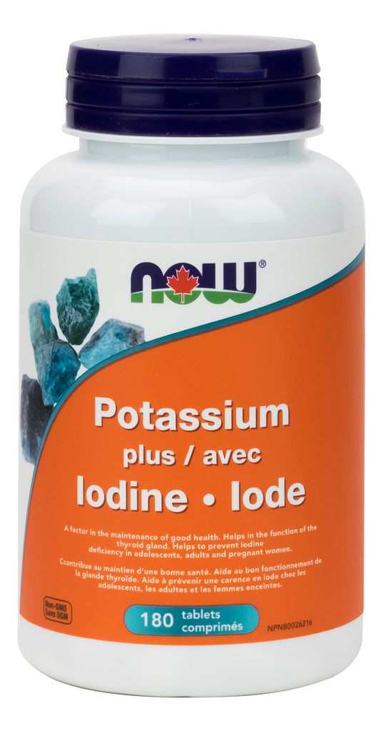 Potassium Iodide (KI) is a compound that contains Iodine, a nutrient necessary for normal thyroid function. Iodine in the form of Iodide is an integral part of thyroid hormones, which regulate cellular metabolism and energy production. NOW® Potassium plus Iodine also supplies 99 mg of Potassium and 5 mg of sodium per tablet. These minerals impact water balance in the body.