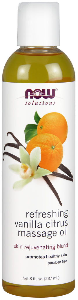 Solution: Vanilla Citrus Massage Oil is infused with the powerful antioxidant benefits of natural Vitamin E to help protect skin and elastin fibres. Jojoba Oil penetrates deep to provide cell-renewing benefits while Almond and Apricot Oils soften and moisturize the skin's delicate tissues.