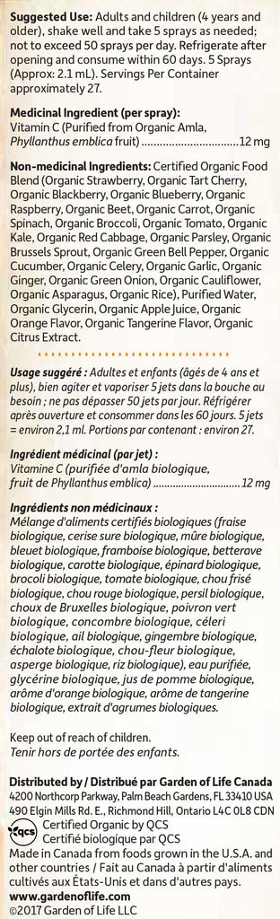 Made from real organic whole foods, including Amla berry, mykind Organics Vitamin C provides 60 mg in approximately five yummy sprays! Organic Amla berry is one of the richest food sources of vitamin C with naturally occurring bioflavonoids and supporting co-nutrients for vitamin C absorption. Vitamin C helps to maintain immune function.
