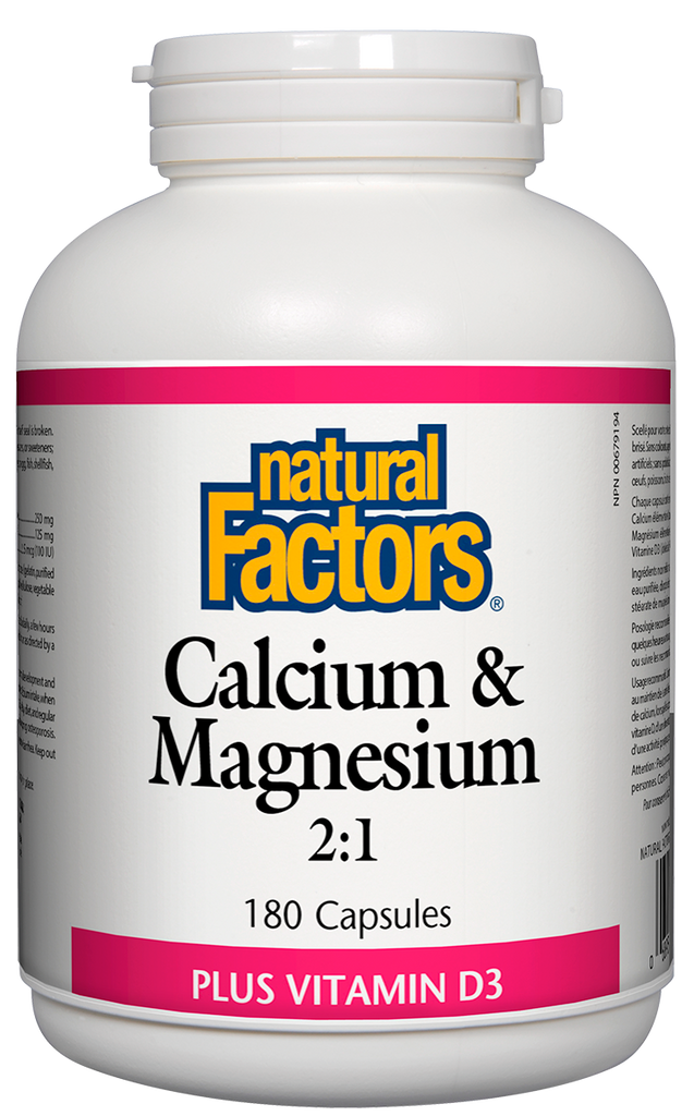 Natural Factors Calcium &Magnesium 2:1 Plus Vitamin D3 contains essential nutrients for the maintenance of good health and for the normal development and maintenance of healthy bones and teeth. This formulation contains the perfect mineral ratio for stronger bone calcification plus vitamin D for superior mineral absorption and utilization.