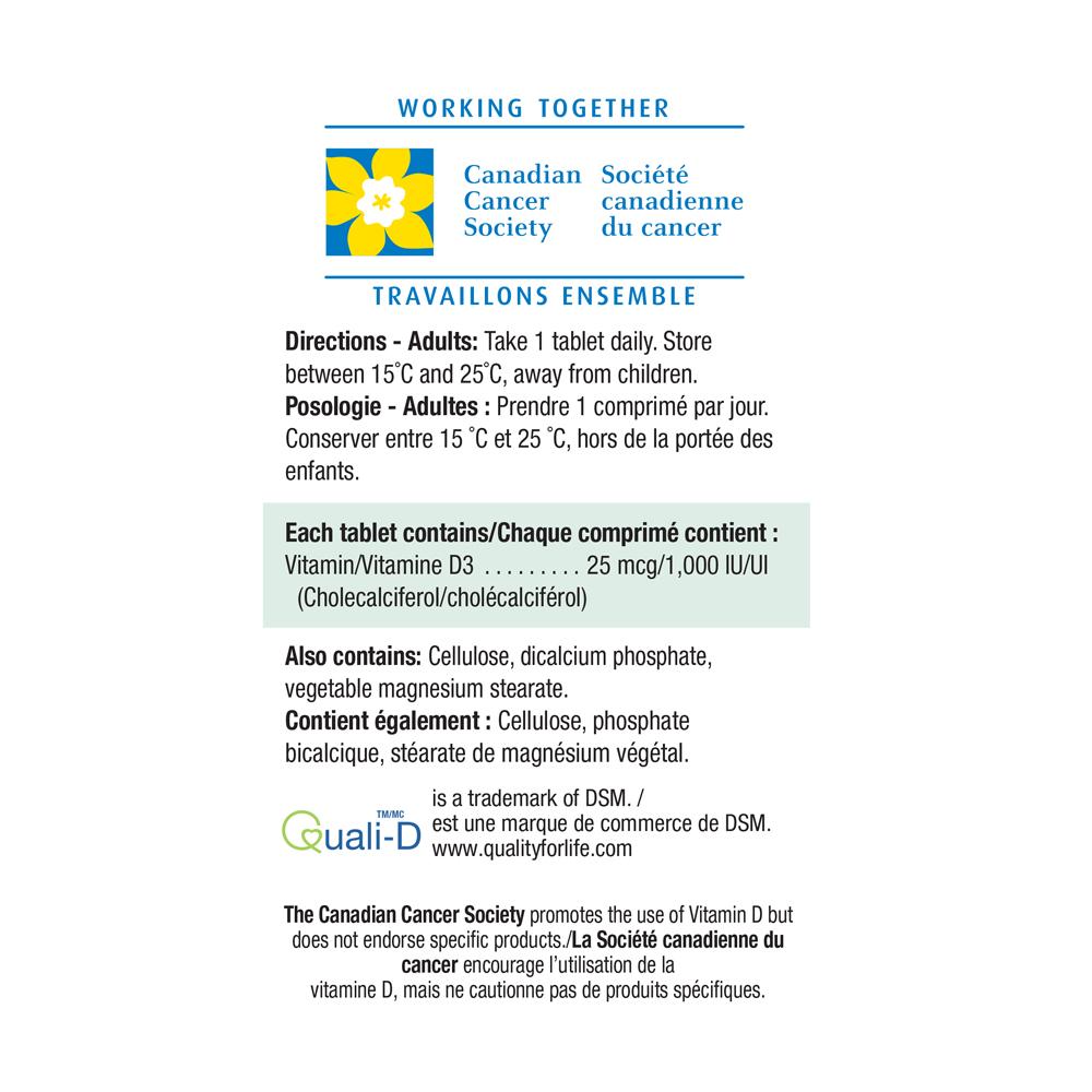 Vitamin D 1,000 IU: Adults: Take 1 tablet per day. Store between 15ºC and 25ºC, away from children.