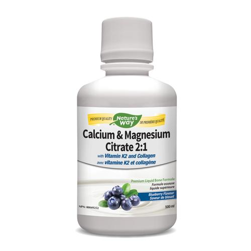Nature's Way Calcium & Magnesium is formulated in a 2:1 Calcium to Magnesium ratio in a great tasting blueberry formula. It also contains bone-friendly ingredients Collagen, Manganese, Boron, Vitamin K2 and Vitamin D3. This liquid form is a convenient alternative to tablets or capsules to help support the maintenance of bones and teeth.