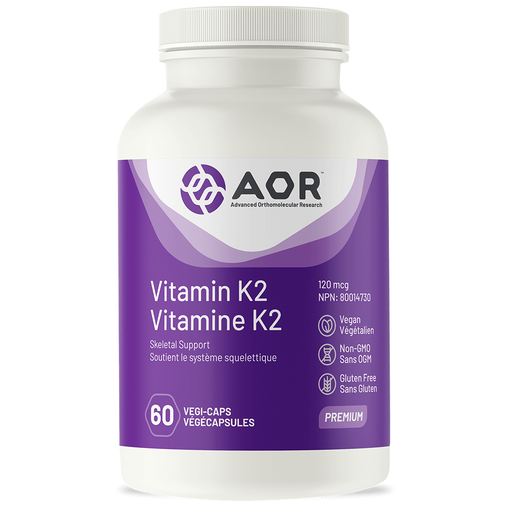 Driven by research, AOR’s new formulation offers a 50/50 blend of 60 mcg each of both forms of vitamin K2 in order to provide an adequate dose for the absorption benefits of MK-7 while still providing MK-4, which has been successfully clinically studied and used for bone health for decades and is the primary form found in the human body.