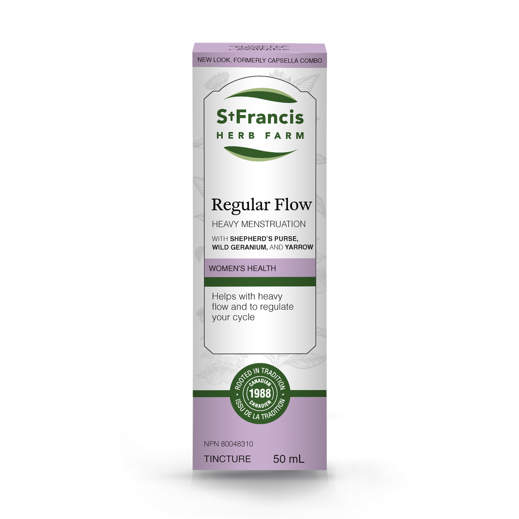 Regular Flow is a tincture formula that helps relieve menorrhagia (i.e. heavy menstruation).