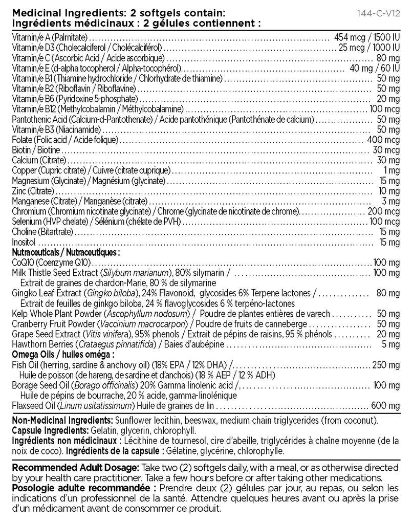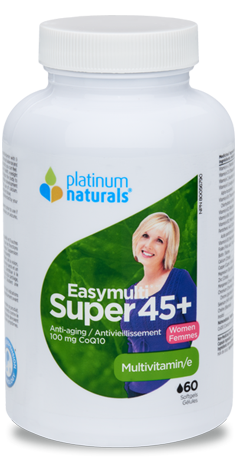 Heart health Coenzyme Q10 (CoQ10) is a potent antioxidant that is involved in energy production in the heart. It protects LDL cholesterol from oxidizing and helps lower blood pressure. By age 40, we may no longer produce enough CoQ10 to meet our daily needs. Super Easymulti 45+ for Women has 100mg of CoQ10, Omega-3 Fish Oils, and Hawthorn Berries plus a full complement of B vitamins for heart health. Brain power To maximize brain power as we age, Super Easymulti 45+ for Women has Ginkgo Biloba, CoQ10 and DHA from Omega-3 Fish Oil to improve blood flow and nutrient supply to the brain. Powerful antioxidants like Green Tea and Grape Seed Extract provide further protection from free radicals. Liver, bones and immune support Essential nutrients such as milk thistle help to detoxify and support your liver function. Vitamin D and co-factors support your immune system and healthy bones. Superior Nutrient Absorption™ Your body can only benefit from what it absorbs. Super Easymulti 45+ for Women is made with our award-winning Superior Nutrient Absorption™ delivery system: nutrients protected in healthy oils enable your body to absorb more of what it needs throughout the day.