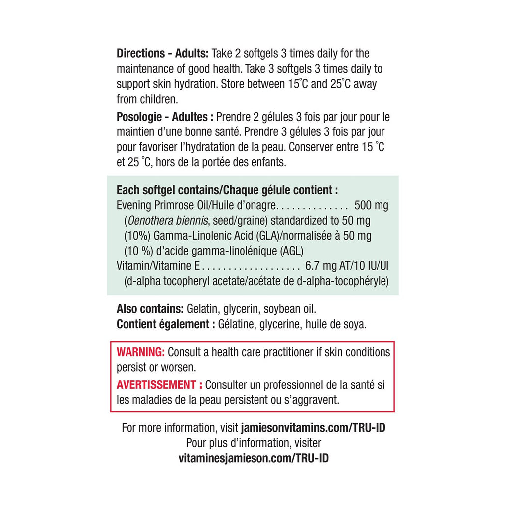 Jamieson Evening Primrose Oil is made using the purest and most premium cold-pressed oil and is fortified with the powerful antioxidant Vitamin E that is essential for the maintenance of good health. In addition to overall good health, Jamieson Evening Primrose Oil can also help maintain healthy and hydrated skin, improve skin elasticity, reduce acne related inflammation, and relieve symptoms associated with eczema.