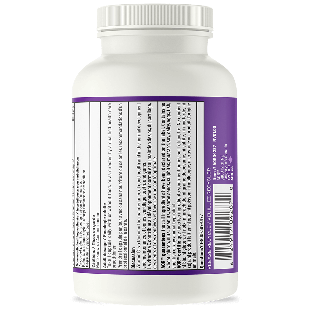 AOR’s Vitamin C formula is a high dose, pure ascorbic acid and can benefit everyone, especially those who have a family history of cardiovascular disease, seasonal allergies, weak immune system or people who do not regularly consume citrus fruits or other foods rich in vitamin C.